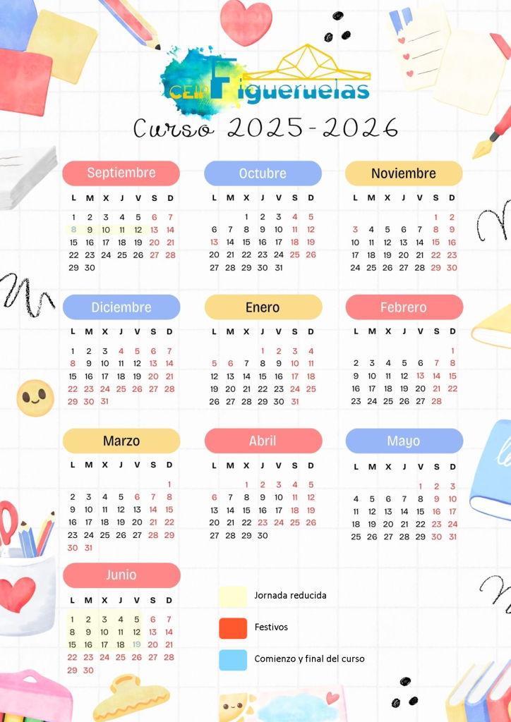 Calendario escolar CEIP de Figueruelas. Curso 2025/2026.